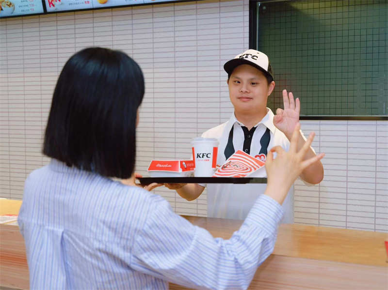仪式结束后,彭乐来到刚入职的“天使员工”淼淼的窗口点餐,之后感慨地说:“我们希望肯德基‘天使餐厅’能开遍信阳的每个县区,从而带动更多企业关注残疾人就业,让更多有志残疾青年实现梦想。”