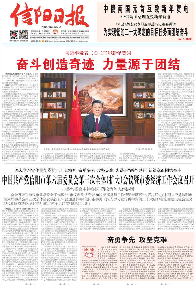 紧紧围绕市委、市政府中心工作,精心策划推出《万人助万企 信阳在行动》《美好生活 青春信阳》《弘扬大别山精神 打造党性教育高地》《乡村振兴 你我同行》《创新拼搏当前锋 回眸2023》等专题专栏,彰显老区信阳经济社会发展新气象。其中,围绕全省第九期“三个一批”项目建设活动,推出《豫美好 信未来——“三个一批”活动特刊》;围绕第三十一届信阳茶文化节、第十一届中原(固始)根亲文化节等,推出专版专栏专题,呈现“两个更好”的信阳新篇章。