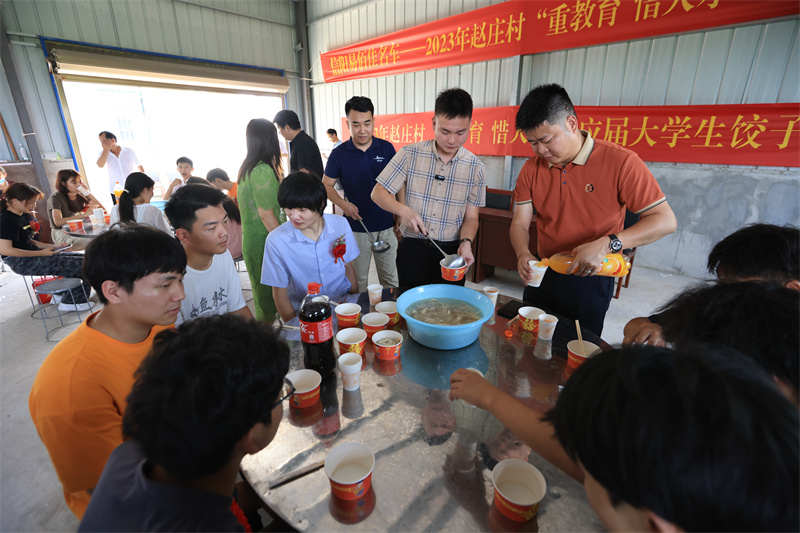 2023年8月22日,信阳日报在定点帮扶村举办捐资助学饺子宴活动