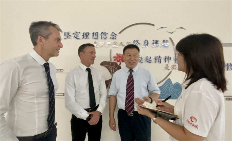 信阳日报记者李亚云(右)采访丹麦医学专家
