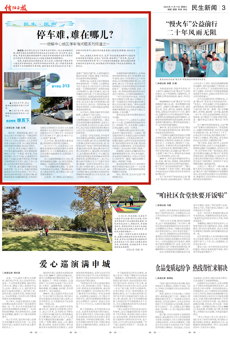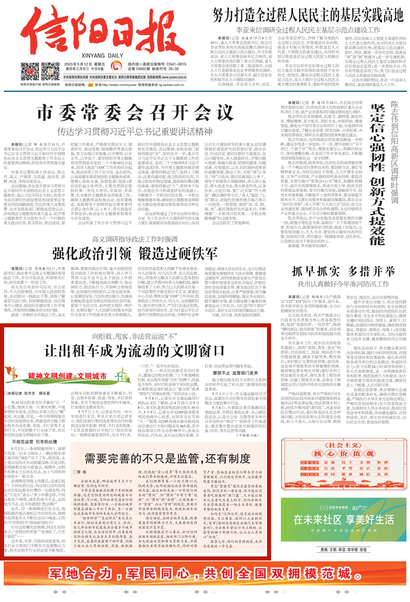 秉持问题导向、结果导向,信阳日报坚持科学、准确、依法开展舆论监督。2023年,聚焦群众反映的出租车乱象,通过记者暗访等形式深入采访,推出报道《向拒载、甩客、非法营运说“不”让出租车成为流动的文明窗口》,并配发评论《需要完善的不只是监管,还有制度》;围绕群众反映较为强烈的城区停车难问题,策划了《我市破解中心城区停车难》系列报道,从《停车难,难在哪》《停车难,怎么办》《怎样系统解决停车难》三个方面分层递进,用普通市民的触感叙写民生问题。上述报道刊发后,得到有关部门的高度重视,推动了民生实事落地。
