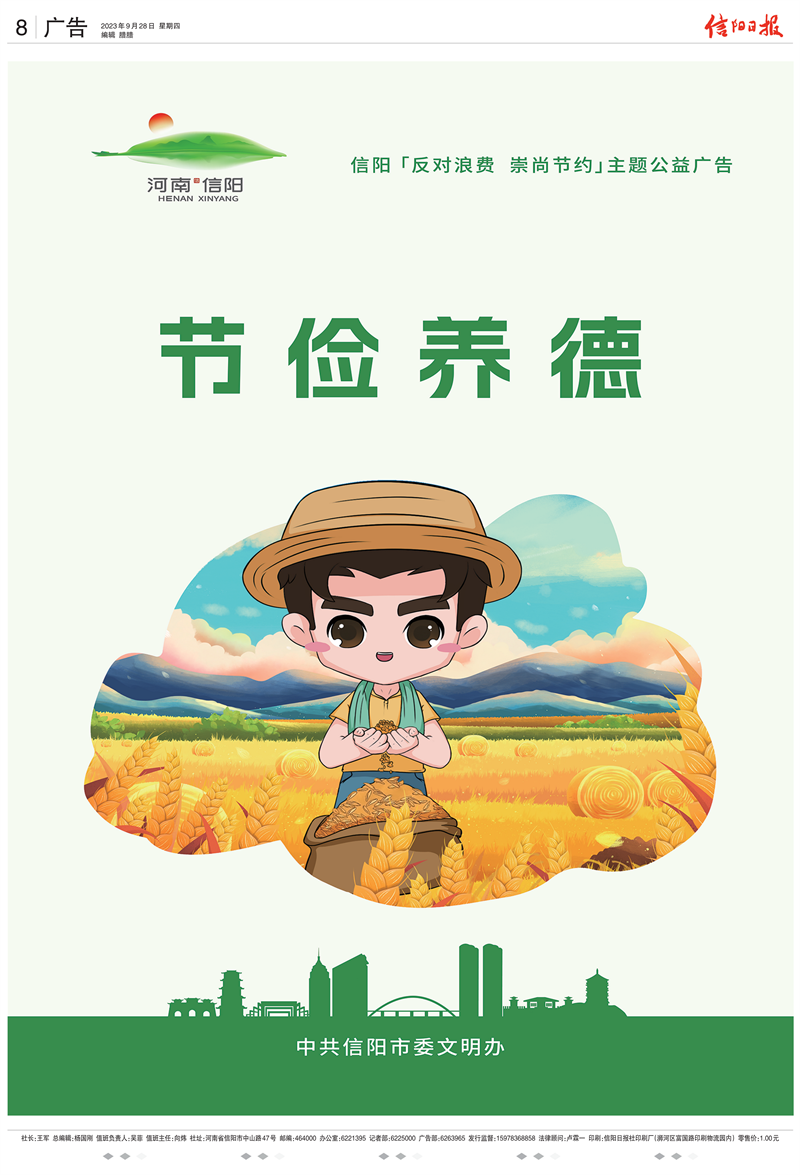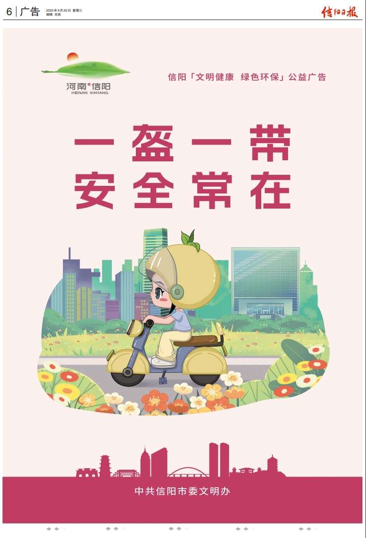 弘扬主流价值,刊播公益广告。2023年,信阳日报刊发公益广告版面78个,信阳晚报刊发公益广告版面56个,发挥了公益广告的引导教育功能,促进了社会主义精神文明建设。