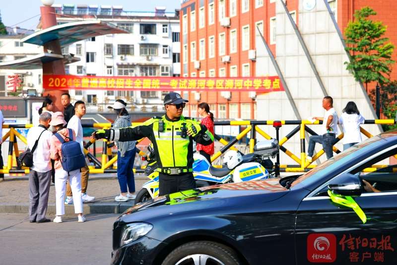 当天上午8时30分,记者在浉河中学考点看到,不少家长身穿红色T恤、旗袍前来送考,考生自信满满地走进考场。考场周边,我市公安、交警、城管等部门派出大量人员,全力护航高考。