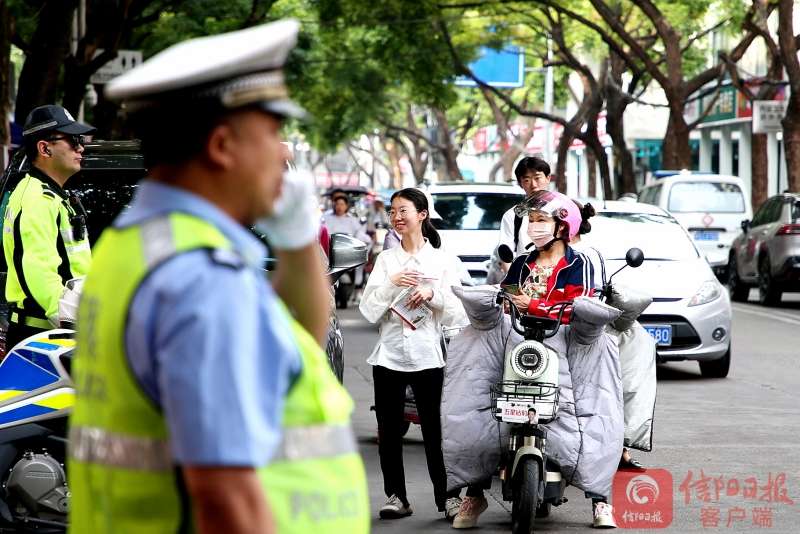 在信阳市七中考点外,“高考户政临时服务台”引人注目。高考期间,每个考点都有这样的临时服务点,民警为开考前发现居民身份证损坏、丢失的考生提供现场核实身份、开具临时身份证明等服务,为考生“全时段”保驾护航。