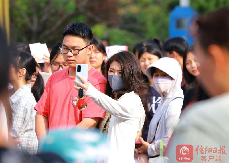 在信阳市二高考点外,翘首以盼的家长每人手中都拿着一瓶矿泉水。早上带孩子坐免费公交车赶过来的詹女士感激地说,“孩子们高考,一群人在护航,感谢无私奉献的人们。你看现场设置有服务台,志愿者们一会儿给我们送水、一会儿送点心,贴心的服务让我们感动!”
