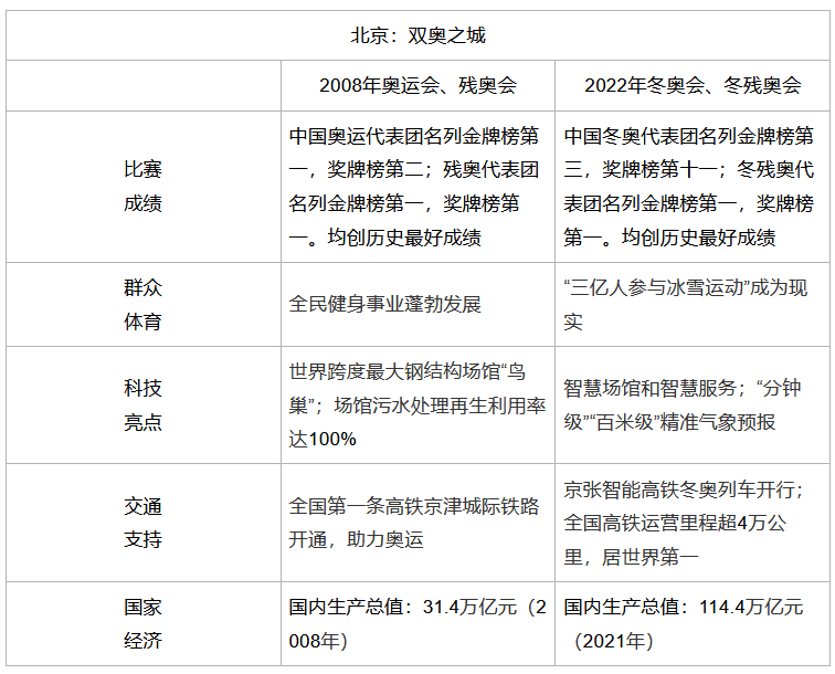 双奥之城,闪耀世界。两次奥运会,都显示了中国体育发展的新高度,展示了中国综合国力的跨越式发展,也见证了你从懵懂儿童向有为青年的跨越。亲历其中,你能感受到体育的荣耀和国家的强盛;未来前行,你将融入民族复兴的澎湃春潮。卓越永无止境,跨越永不停歇。