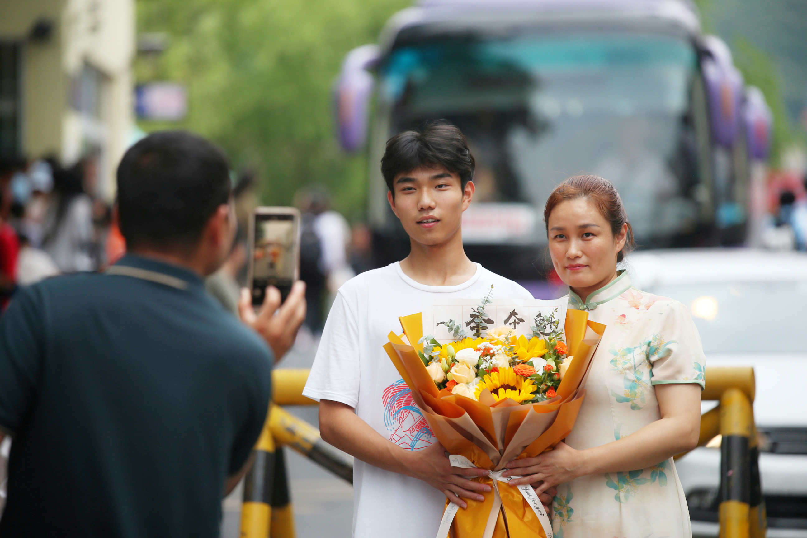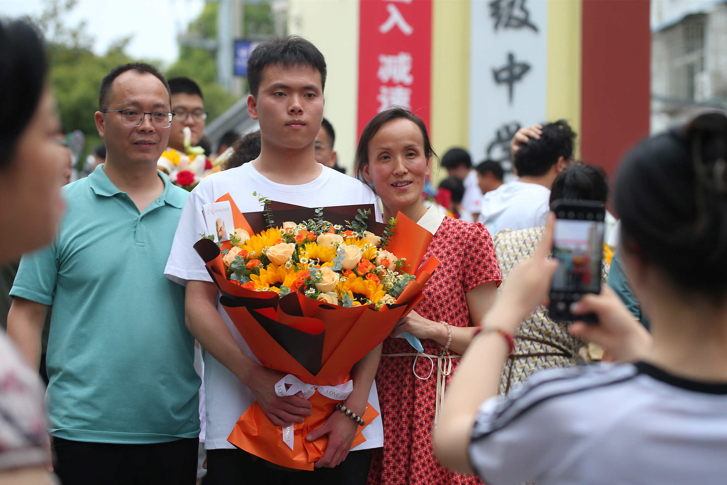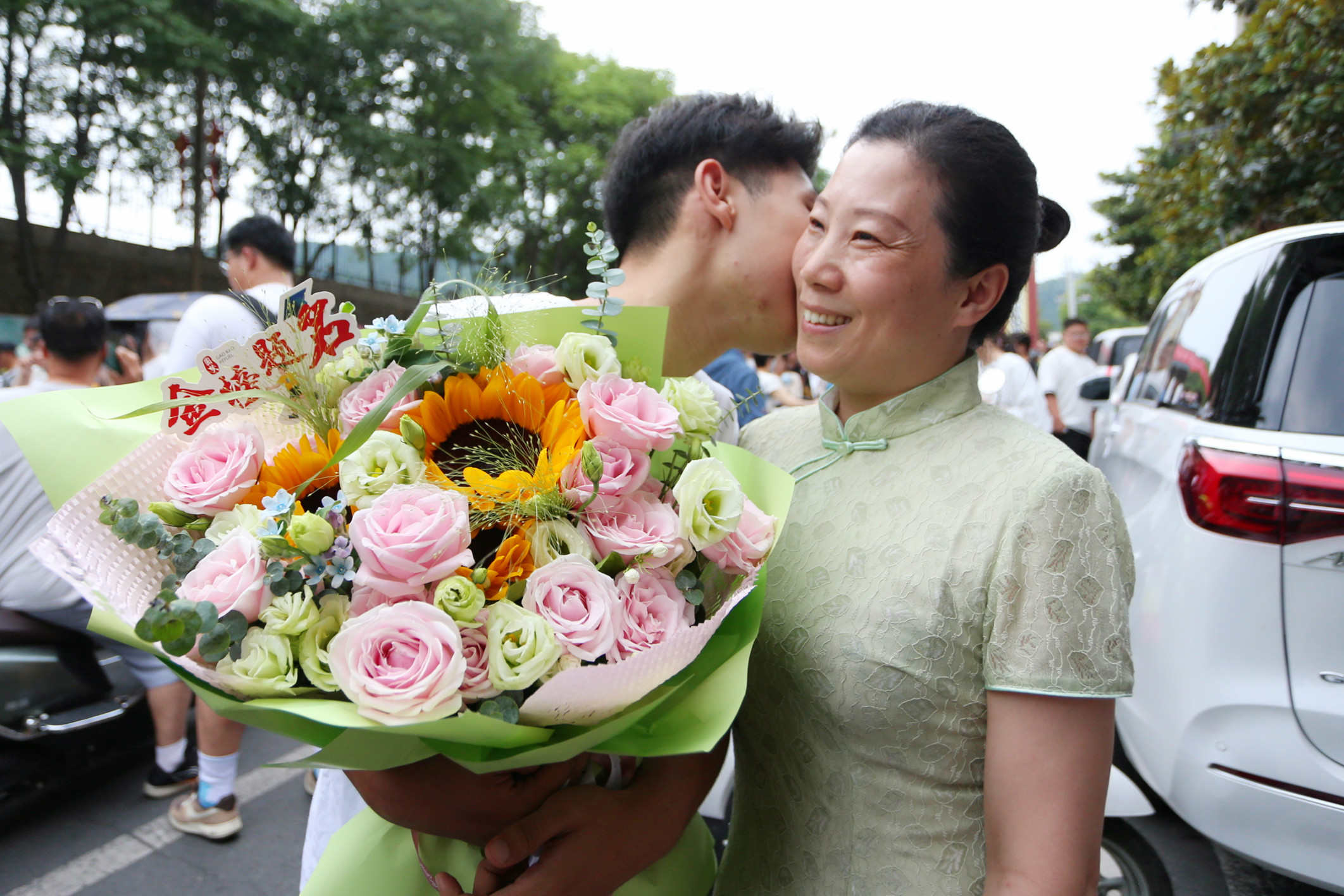 6月8日下午,随着考生们走出考场,2024年普通高等学校招生全国统一考试落下帷幕。在现场,许多家长为孩子送上鲜花,给孩子一个深深的拥抱并合影留念,场面非常温馨。