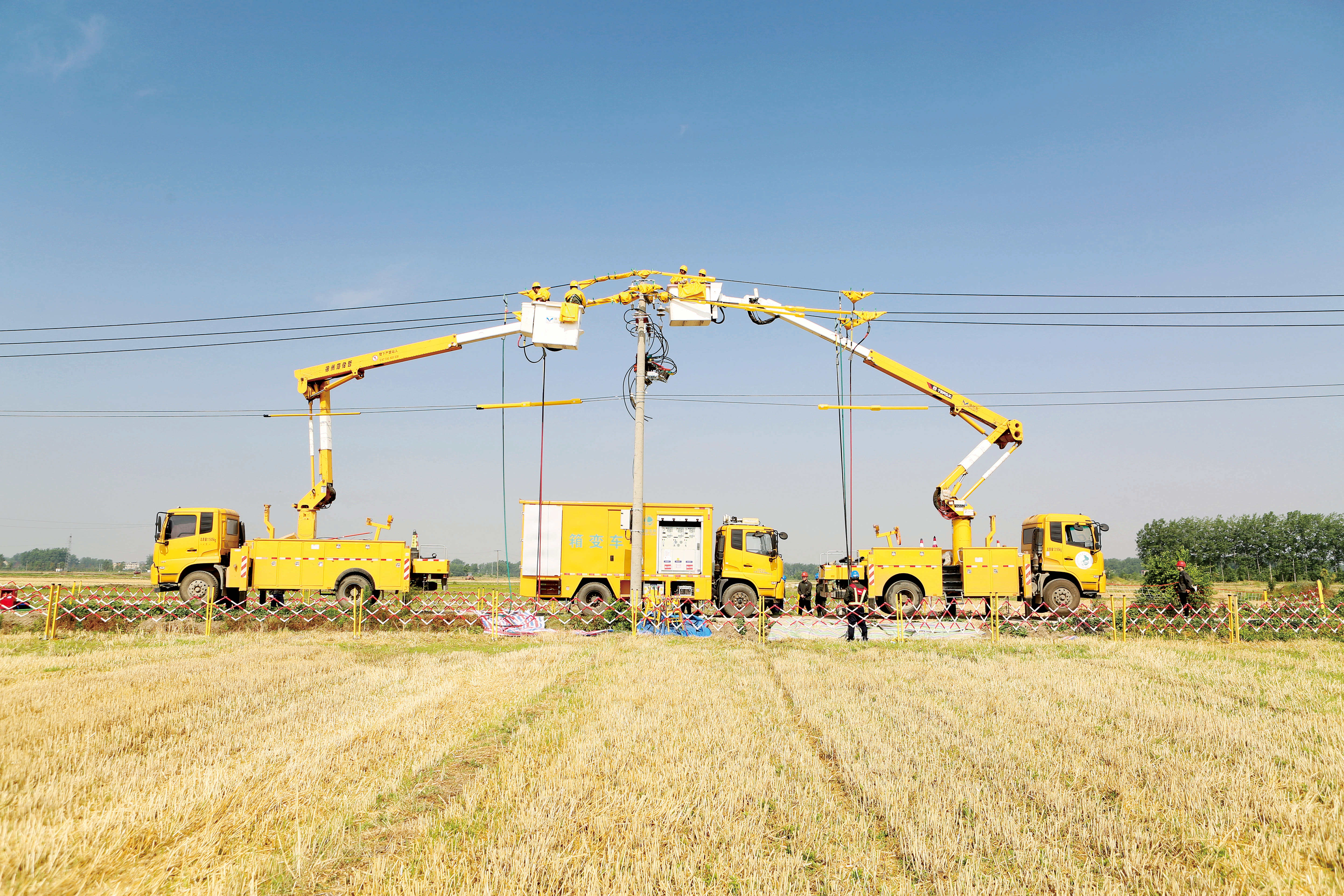 图为淮滨县供电公司开展10千伏牡7线铁炉营051号杆带负荷直线改耐张并加装智能开关工作,保障抗旱灌溉用电。(刘袁昕 张志勇 文/图)