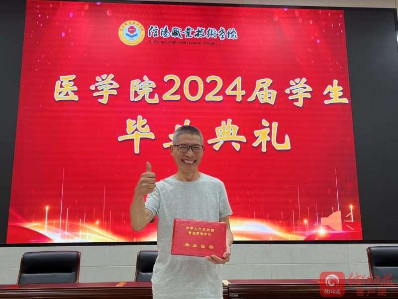 “这次毕业典礼对我来说意义重大,我一定要返校参加。捧着毕业证的那一刻,别提多开心啦。我真的圆梦大学啦!”6月19日,刚参加完信阳职业技术学院医学院2024届学生毕业典礼的59岁大学毕业生刘全胜难掩激动之情。