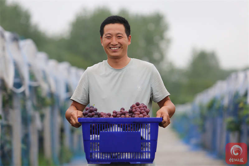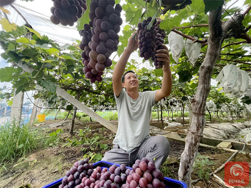 1988年出生的吕顺大学时学的是建筑和土建,毕业后在江苏等地参与过项目,2015年响应政府号召返乡创业。勤劳肯干能吃苦的他很快赢得乡亲们的信任,成了一名村干部,也成了远近有名的致富带头人。2021年,他从乡里转接下了这个因经营不善长年亏损的葡萄园。从那时起,他就带领着周围的乡亲们,在100多亩的葡萄园内重新挖沟、施肥、剪枝、挂(防鸟)网、套(防尘)袋。经过一年多坚持不懈地努力,2023年,葡萄园终于焕发出生机,重新开始挂果、丰收,可惜由于销售渠道不畅,加上8月份时,信阳连续降雨,严重影响了葡萄的产销,于是,今年吕顺便向信阳日报“云享信阳”助农团发出了求助信息。