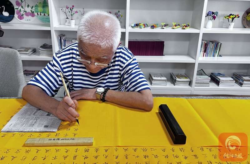 今年“三伏”格外炎热,86岁的陈国强老人在入伏的时候,就住进了信阳华信圣德颐养之家。“这里的环境很好,生活起居有专人照顾。医院就在身边,身体有啥毛病都能得到及时医治。”昨日,满头银发的陈国强边练习毛笔字边对记者说。