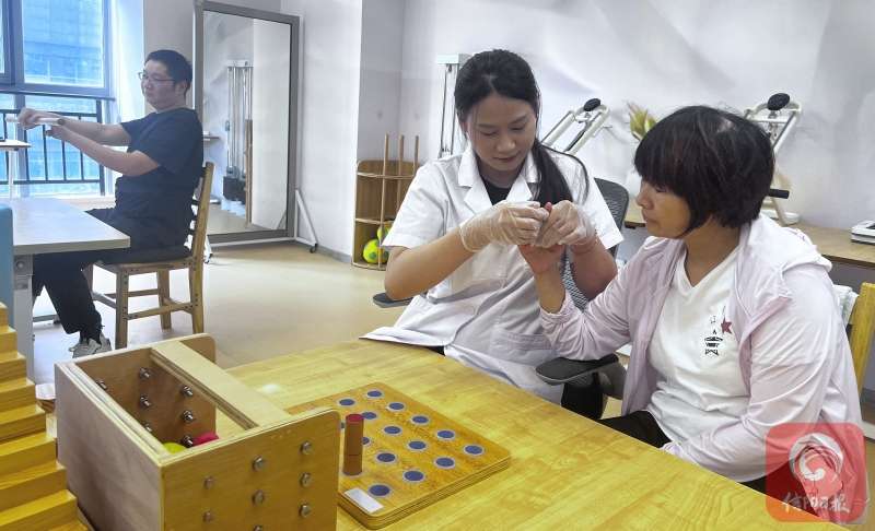 紧邻华信圣德健康养护中心的,就是华信圣德康复医院。72岁的刘全民老人在医护人员的指导下,正在进行肢体康复训练。“前几年因脑出血造成半身不遂,在家里康复孩子没时间照顾,为不给孩子添麻烦,我就住进了颐养之家。在这里每天训练两小时,你看,我这只手快能拿捏东西了。”刘全民老人满意地说。