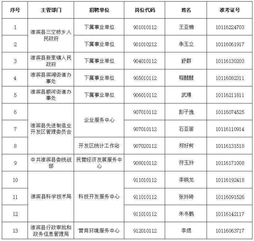 附:淮滨县2024年参加信阳市事业单位公开招聘联考工作拟聘用人员名单