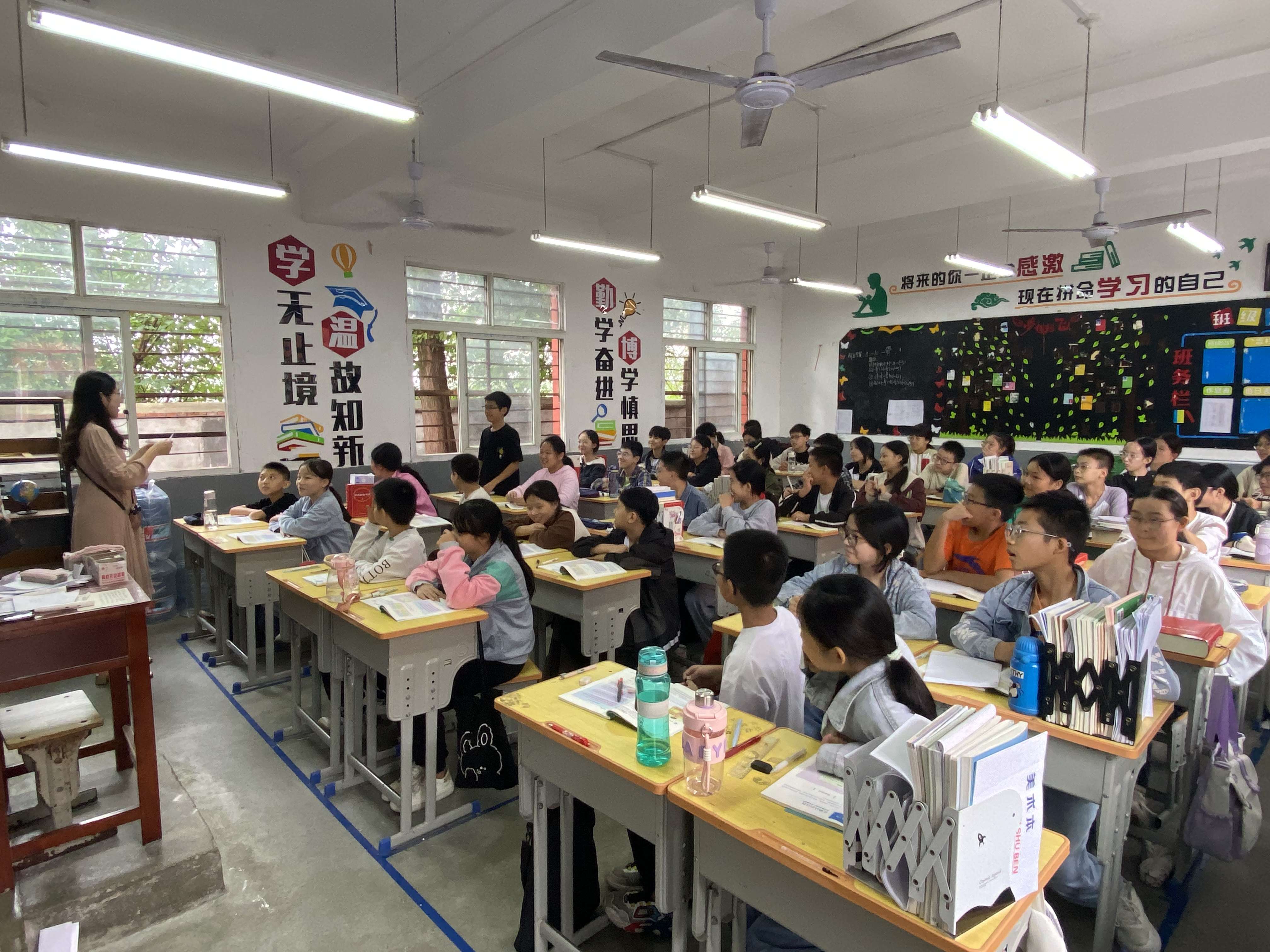 在浉河区柳林乡中心学校,七年级二班的《道德与法治》课同样引人入胜。老师巧妙地以刘翔在2004年雅典奥运会上那激动人心的夺冠瞬间为引子,引领学生们踏上了一场关于奋斗、坚持与荣耀的心灵之旅。