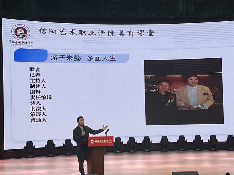 “这真是一堂别样的美育课呀!两位专家以各自独特的视角和人生经历,为我们打开了全新的视野,引领我们走进一个充满魅力与无限可能的世界,让我受益匪浅!”11月7日,信阳艺术职业学院的美育课堂一结束,学生孙娅就感慨道。