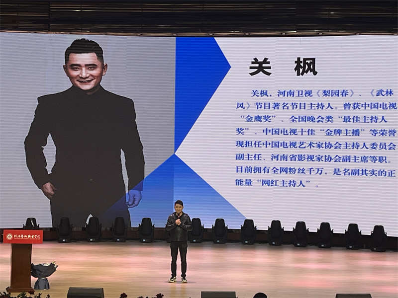 本次美育课堂,该校邀请北京大学访问学者、中国电视艺术家协会主持人专委会执委、中国书法家协会会员朱懿以及中国电视艺术家协会主持人委员会副主任、河南卫视《梨园春》《武林风》节目主持人关枫到校指导。两位专家以“向美而行 懿述人生”为题,围绕“懿述人生”“文学求善”“艺术求美”“向美而行”四个方面,通过通俗易懂的语言和鲜活的案例,声情并茂地讲述了他们的人生经历和对“美”的理解,为师生们带来了一场滋养心灵的美育文化盛宴。