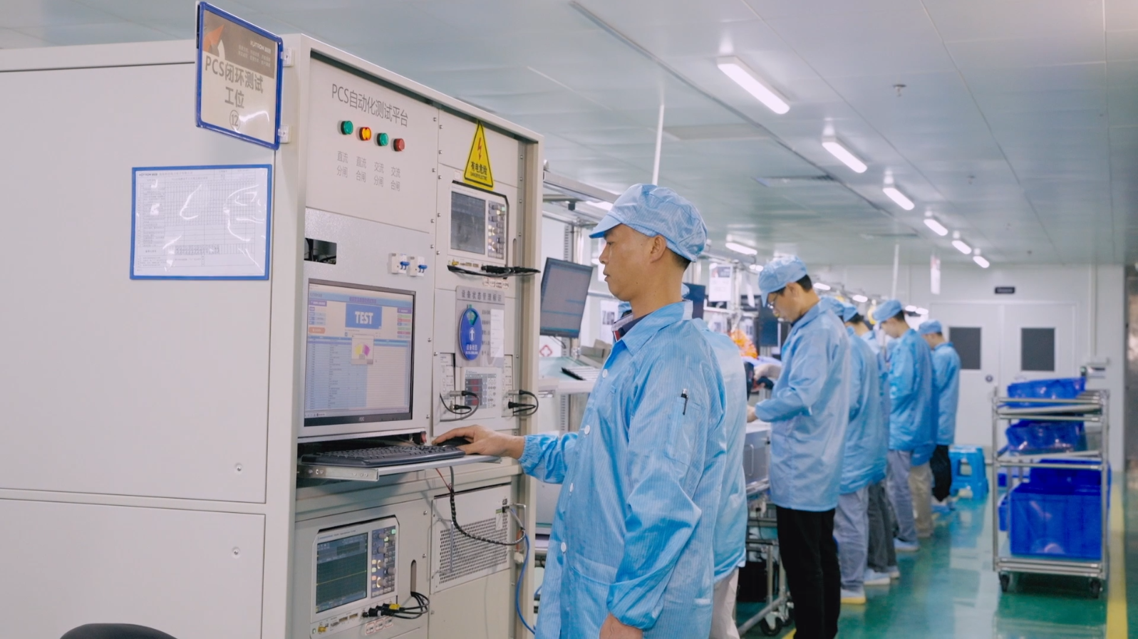 昨日上午,潢川县产业集聚区河南储能电力科技有限公司(以下简称“河南科创”)生产车间内,PACK生产线上的自动化设备正高效运转,一组组储能PACK逐渐成型。旁边的总装生产线上,工人们正忙着组装设备,一台台高大的储能柜整装待发。