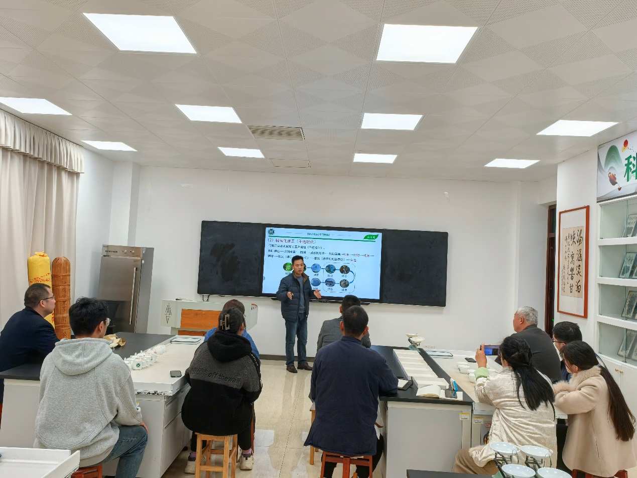 11月24日下午,河南省科技特派员信阳农林学院茶学院副院长陈义教授、河南省茶产业科技特派员服务团长、河南省豫南茶树资源综合开发重点实验室主任、信阳农林学院茶学院二级教授郭桂义,围绕信阳毛尖历史与荣誉、信阳毛尖加工工艺的演变、信阳毛尖加工过程注意事项及品质提升关键技术,组织信阳市各县区10余家茶企代表和相关从业人员,在信阳农林学院茶学院开展公益大讲堂——信阳毛尖专场活动。
