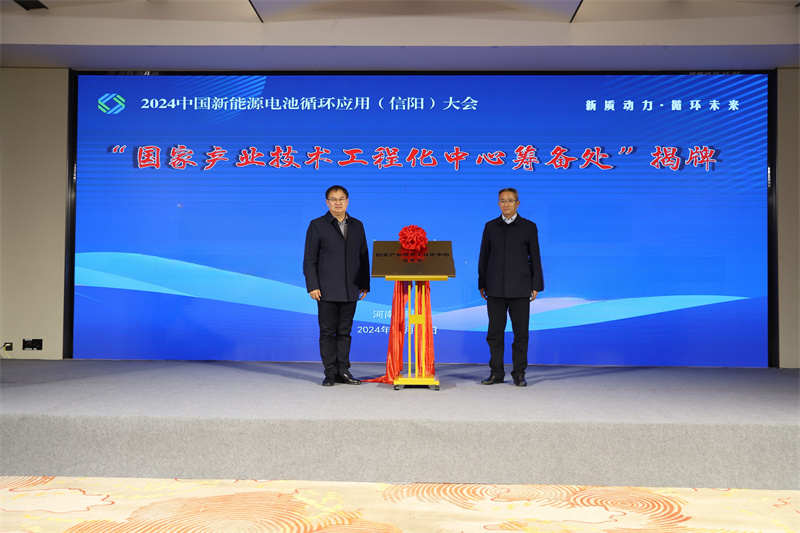 王建新和李灵敏共同为“新能源电池循环应用中试基地”(简称“中试基地”)揭牌。郑洪涛和信阳高新区相关负责同志共同为“国家产业技术工程化中心筹备处”揭牌。
