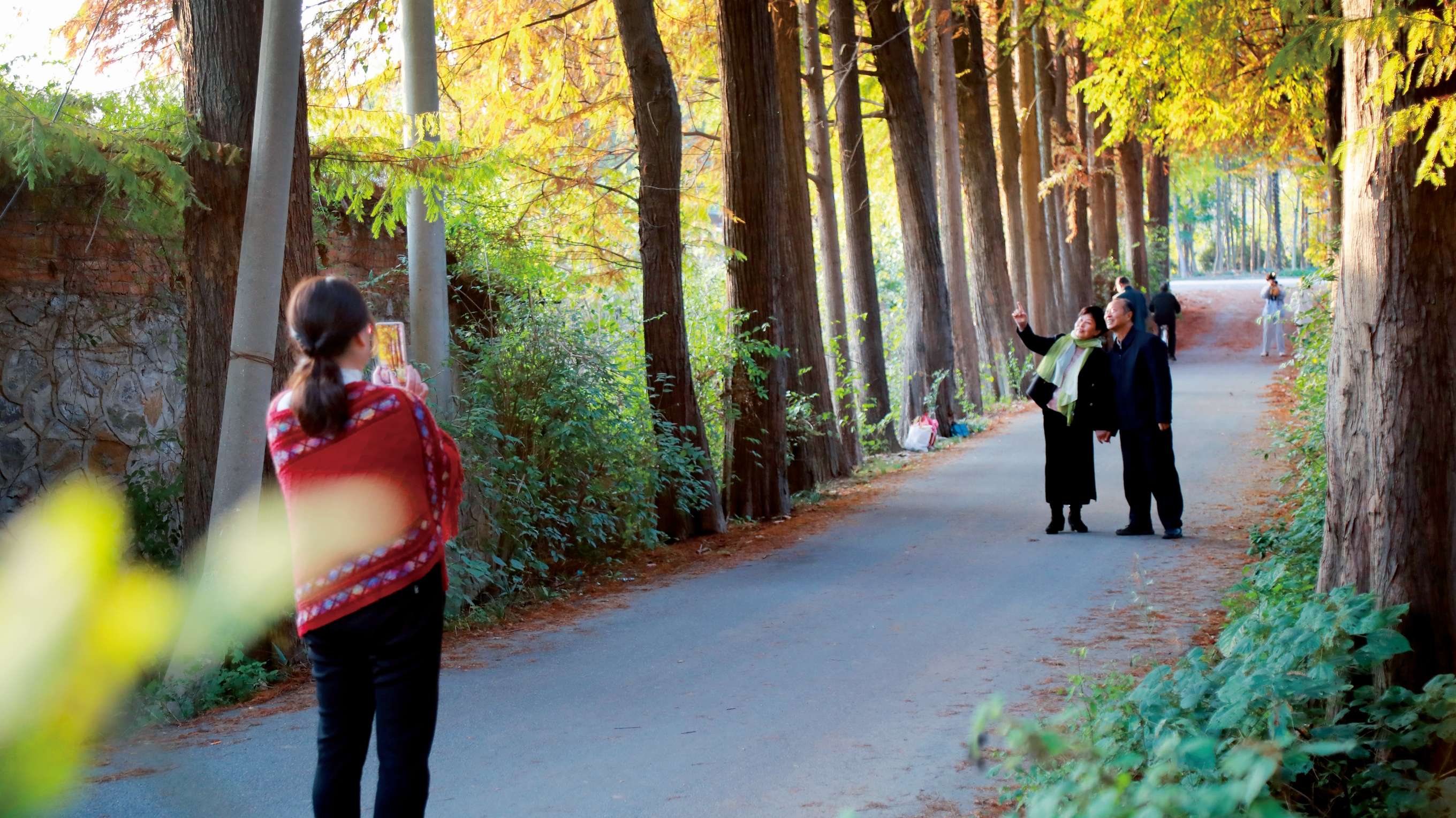 昨日,市民在市区茶韵路与茗阳路交叉口附近的一条无名小路上赏景休闲。路两旁的落羽杉高耸入云、色彩斑斓,在冬日暖阳的照耀下,宛如一幅油画,吸引众多市民和游客前往。他们漫步其中,纷纷举起相机或手机,定格这充满诗意与浪漫的美好瞬间。