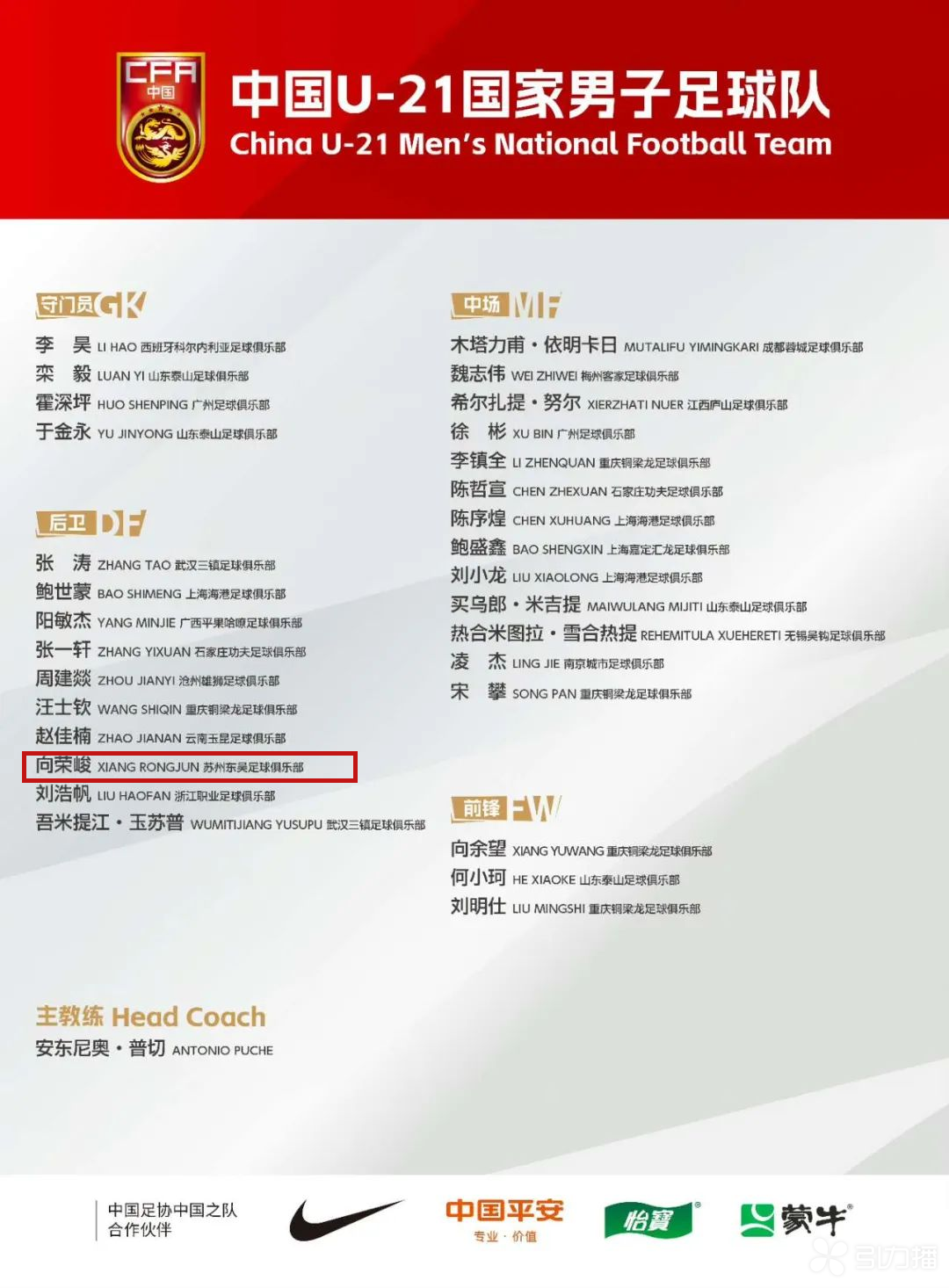 此前,为备战2025年U-23亚洲杯预选赛及2026年名古屋亚运会,向荣峻已入选中国U-21国家男子足球队2024年第三期集训名单。