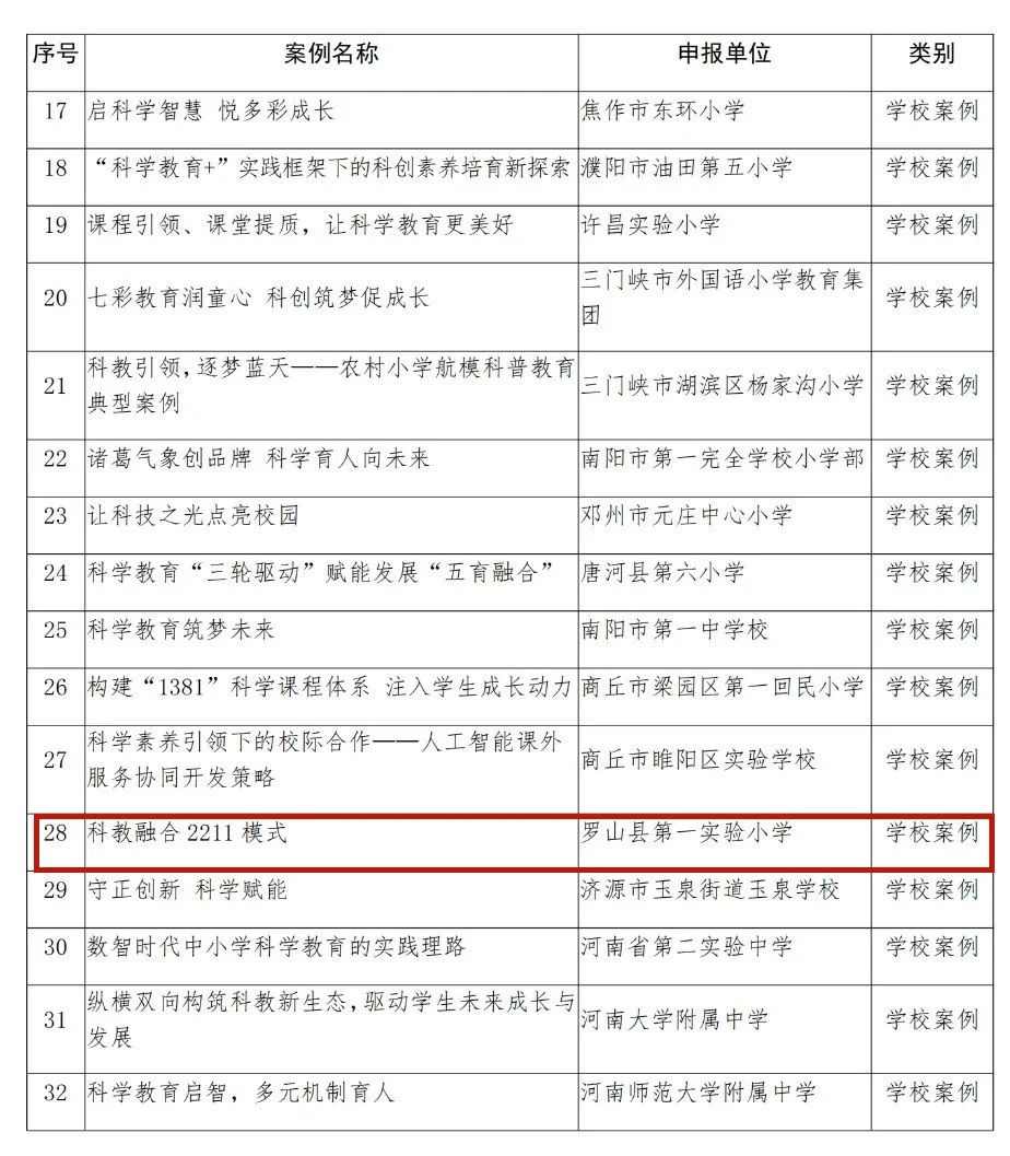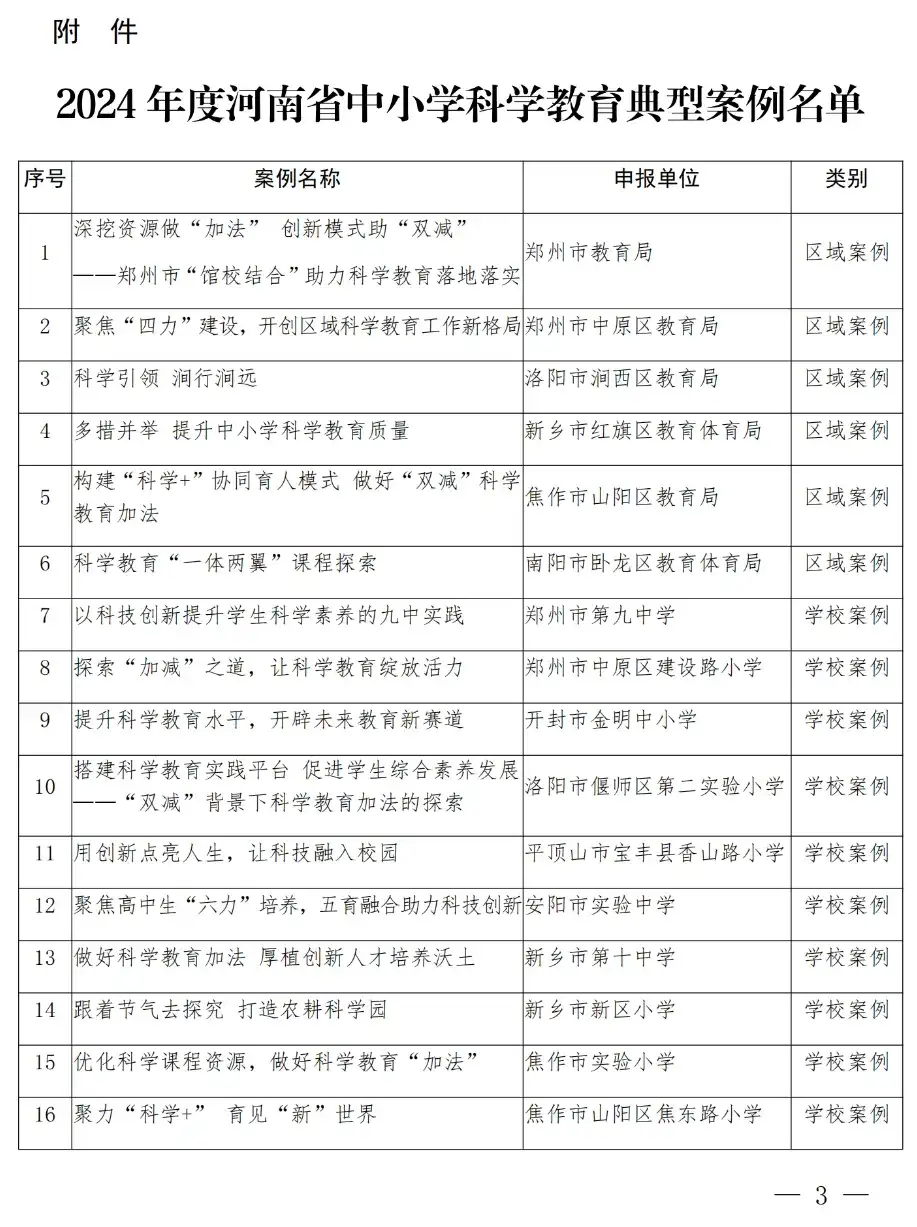 河南省教育厅办公室关于公布2024年度河南省中小学科学教育典型案例的通知