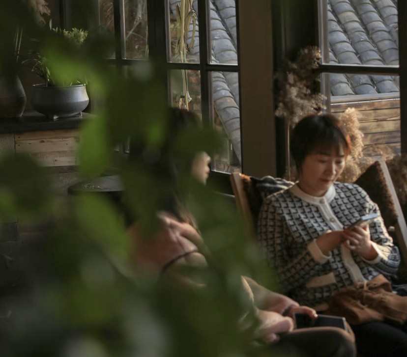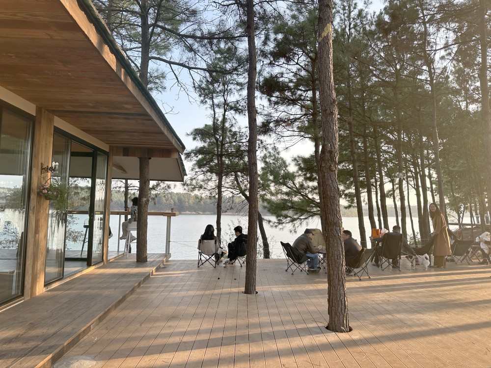 记者走进位于湖畔的湖边咖啡店。这家小店以其独特的设计,巧妙地融入周围的自然风光之中,宛如一幅动人的画卷,静静诉说着羊山的故事。