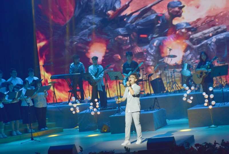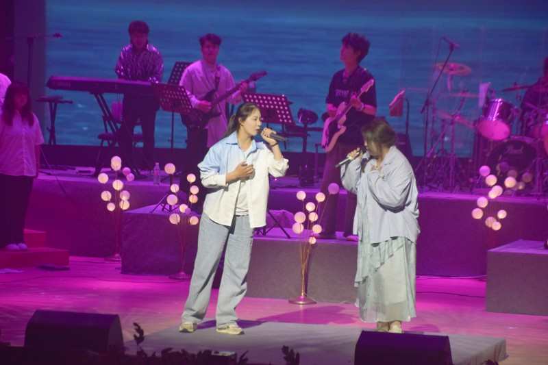 当晚,12首饱含深情的师生原创作品轮番登场。常城斌作词、谢佳硕演唱的摇滚曲《一朵朵》率先点燃全场,炸裂鼓点与热血旋律碰撞;温壮的《出息》则以细腻笔触勾勒亲情牵挂,“或许真正的出息,是回头时总有一盏灯为你亮着”的歌词配合温柔旋律,令观众动容;随后的《慢》以静谧钢琴演奏开场,歌手慵懒声线吟咏时光里的守候;唐瑛琦的《风一吹,就散落成花》则用清澈歌声串联起纸飞机、蝉鸣等校园记忆碎片,唤起青春共鸣。