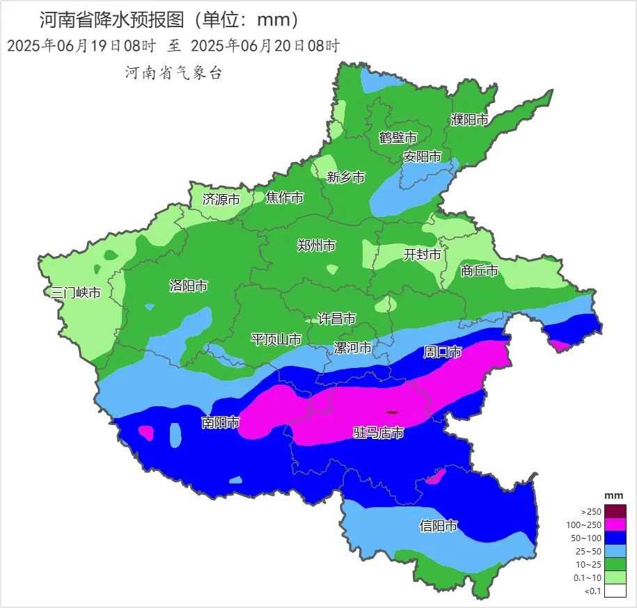 今天下午到夜里,全省有阵雨、雷阵雨,多地将有大雨、局部暴雨,并伴有短时强降水、雷暴大风、冰雹等强对流天气。随着东北冷涡不断发展旋转,19日夜里到21日,冷暖气流在河南中部形成切变线,并逐渐南压。明后天强降水主要出现在我省东部、南部,部分县市有暴雨、局部大暴雨,并伴有短时强降水、雷暴大风等强对流天气。