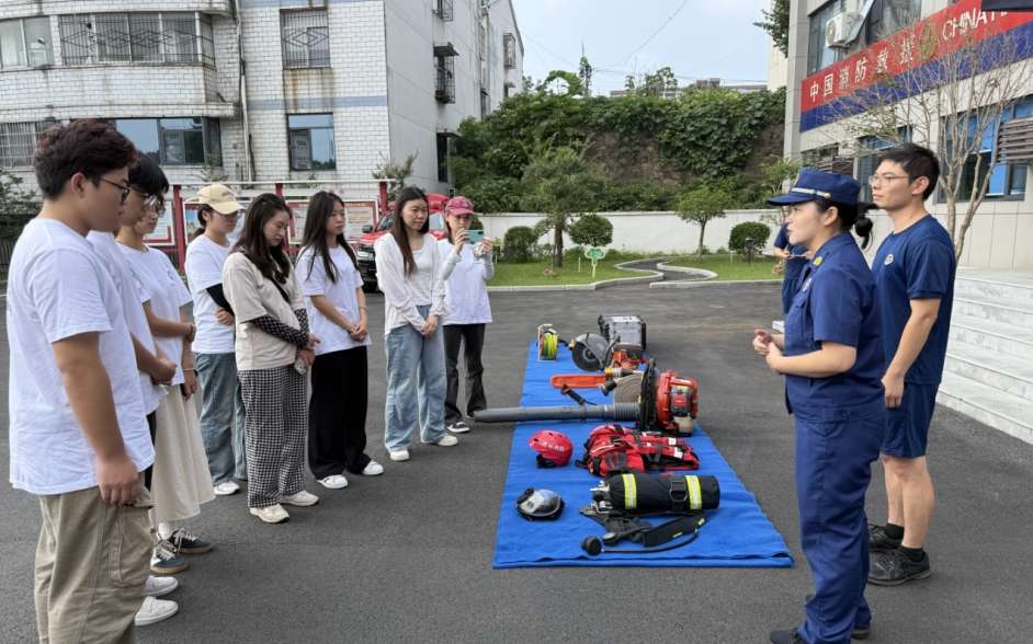 在消防员引导下,学生们参观了消防车辆及随车装备器材,了解了各类器材的用途与操作要点。体验背上空呼时,厚重的装备让学生们真切体会到消防员的不易。演练环节中,消防员快速连接水带出水,动作利落精准。学生们看得专注,不时报以热的掌声。随后的消防知识讲解中,消防员通过案例分享火灾预防、逃生技巧等实用内容,学生们积极互动,收获颇丰。