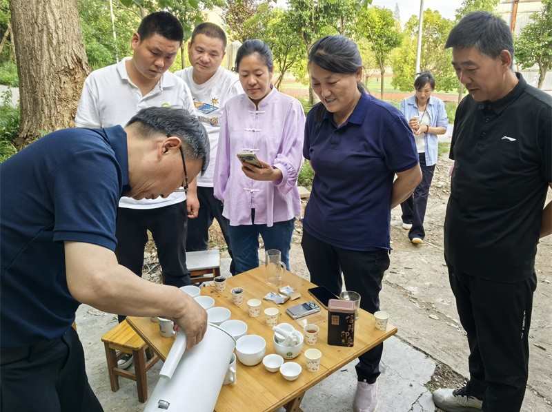 在夏家冲村、黄庙村、白龙潭村等地,他围绕政府工作报告中“做好土特产文章”的要求,指导茶农用茶文化、茶科技赋能“茶”这个特色产品;同时,他还深入茶山,结合茶叶标准化加工与品质提升,给茶农讲解科学育苗、土壤管理、绿色防控、修剪采摘等春茶管理知识,推动农业增效。