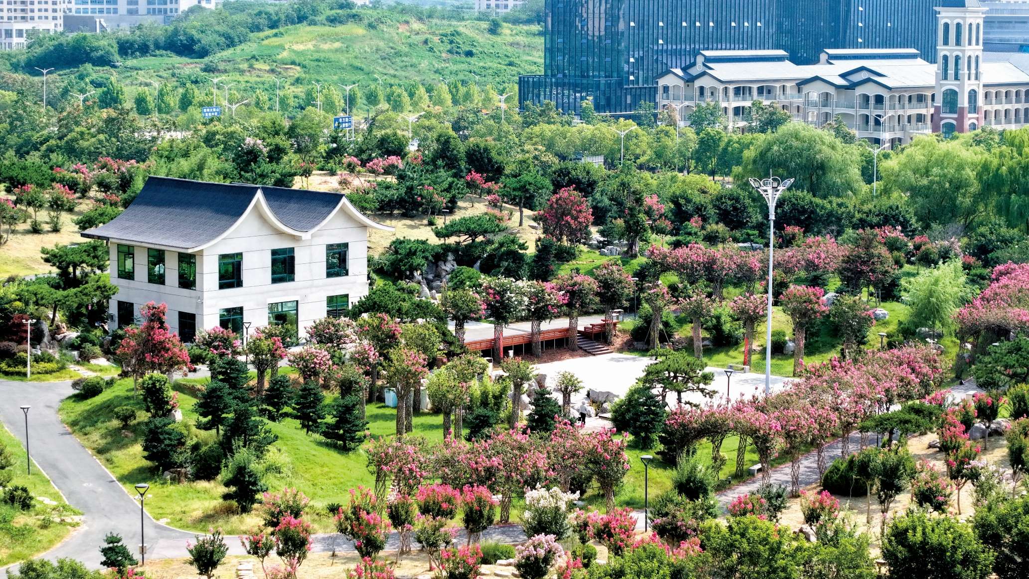 近日,羊山新区和园的紫薇恣意绽放,微风拂过,花枝摇曳,为城区增添一抹浪漫的色彩。