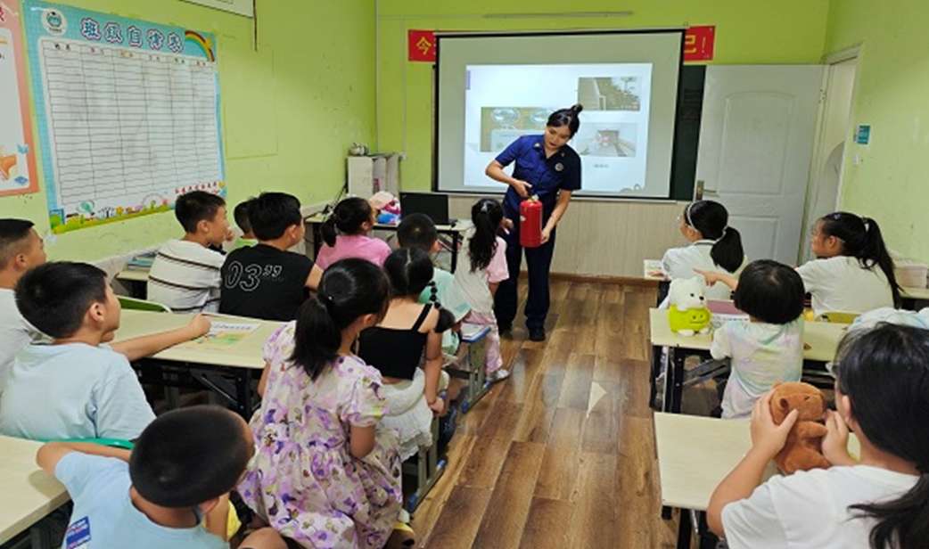 7月30日,平桥区消防救援大队联合区总工会到辖区暑期托管班开展消防安全宣传活动。