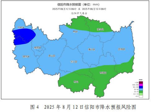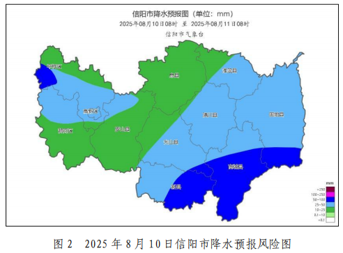 信阳市气象台8月8日12时发布最新预报:受中低空切变线和地面冷空气共同影响,预计9日下午到夜里,我市将有大到暴雨、局部大暴雨,并伴有短时强降水、雷暴大风等强对流天气。降水时空分布不均,强降水主要出现在中西部县区及主城区,累计降雨量40毫米~70毫米,局部150毫米以上,最大小时雨强60毫米/小时~80毫米/小时,并伴有7级~8级雷暴大风。另外,10日至12日仍有中等强度以上降水过程,强降水主要集中在中南部、东部县区。13日至15日仍有分散性短时阵雨、雷阵雨。此次降水过程有望解除全市旱情,但需关注旱涝急转,重点防范短时强降水可能引发的短时城市积水、南部山区山洪地质灾害、中小河流洪水及其次生衍生灾害风险。