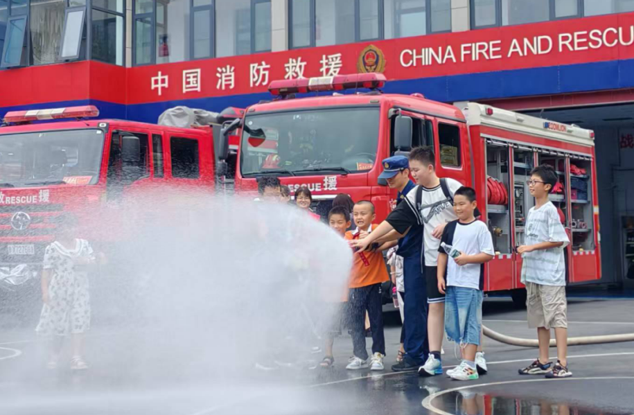 8月13日,新县消防救援大队联合新集街道组织解放社区暑托班的“萌娃”们开展队站开放活动,让孩子们零距离感受消防、体验消防、学习消防。