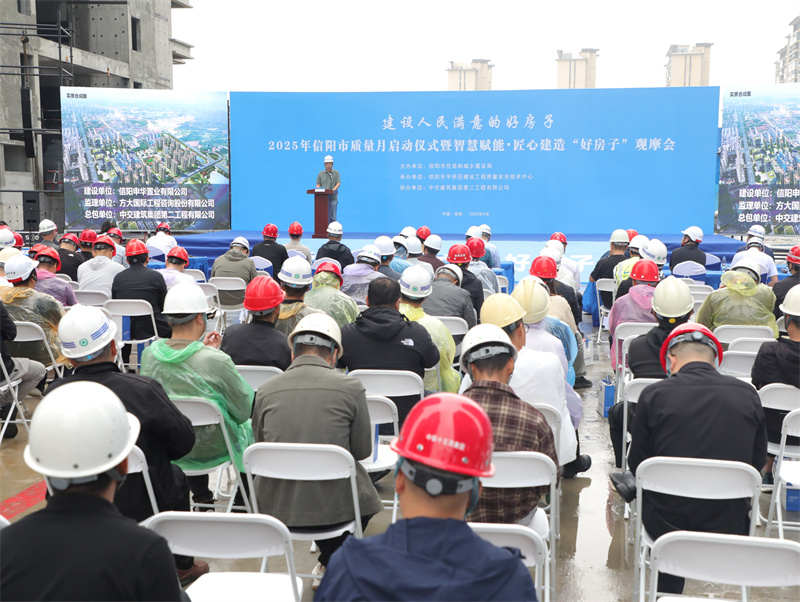 9月17日上午,信阳市住建系统“质量月”现场观摩交流会在华信未来城•空中花园贰号院项目举行。市住建局、各县区住建局相关负责同志,华信建投集团、华银公司、河南省中工设计研究院、中交建筑集团公司信阳片区等单位负责人、项目经理及项目总监参加会议。