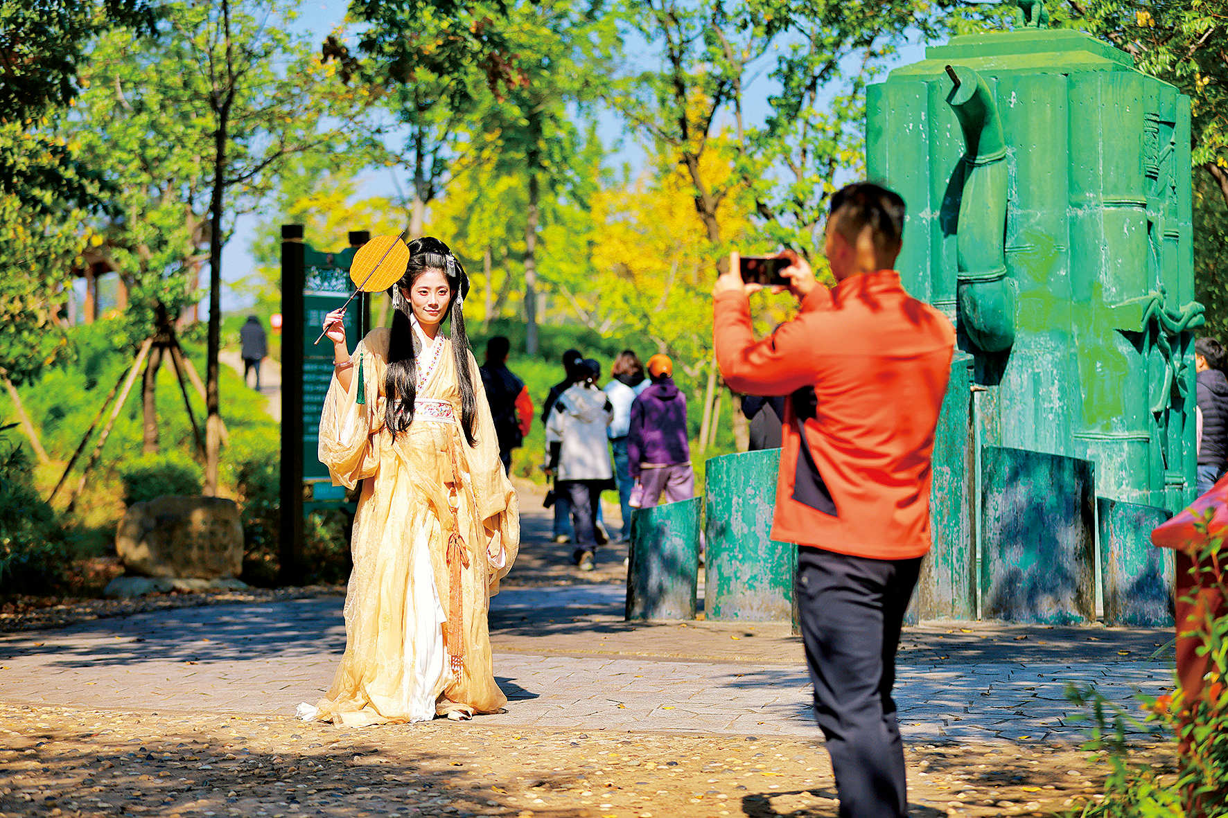 10月26日,游客在南湾湖茶岛体验汉服文化。