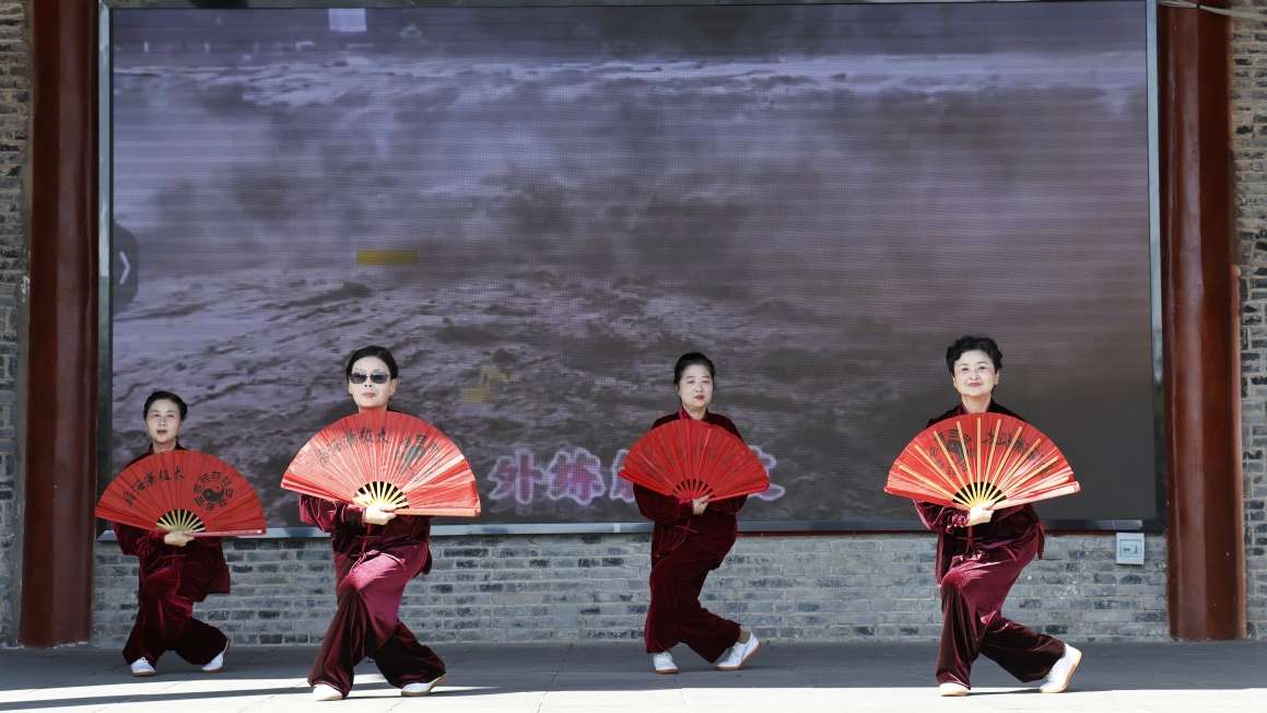 演出在男声小合唱《游击队之歌》的激昂旋律中拉开帷幕,铿锵节奏瞬间点燃现场热情。舞蹈《最美是你》以轻盈舞姿勾勒田畴沃野、农舍炊烟的乡村新景;女声独唱黄梅戏《女驸马》选段婉转悠扬,让传统戏曲的雅韵在乡野间流转;太极扇表演《中国功夫》刚柔相济,一招一式尽显中华武术的精气神;歌曲《信阳等你》以亲切乡音唱出茶城热情好客。深情处见初心,婉转处藏乡韵。