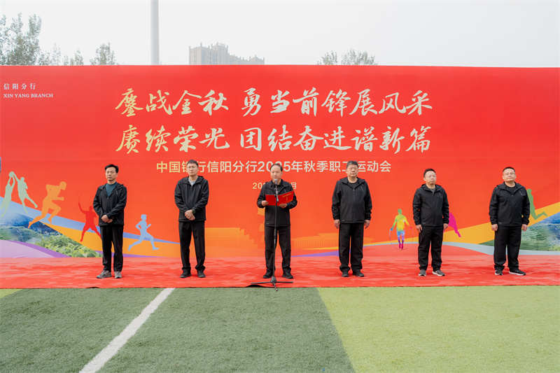 9时30分,开幕式举行。国旗、行旗方阵率先入场,17支代表队整齐列队,嘹亮的口号响彻赛场。中国银行信阳分行党委书记、行长张劲松致辞并宣布运动会开幕。他在致辞中表示,此次运动会是企业文化建设的重要载体,希望全体运动员以“更快、更高、更强——更团结”的奥林匹克格言为指引,赛出水平、赛出风格。