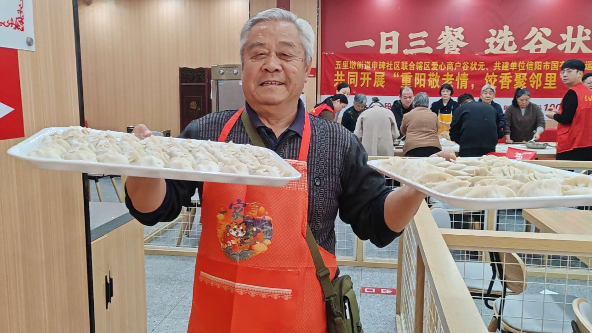 “这店里真暖和,和大家伙儿一起包饺子,比在家热闹多啦!”10月28日,浉河区五里墩街道申碑社区居民李奶奶端着热气腾腾的饺子对记者说。