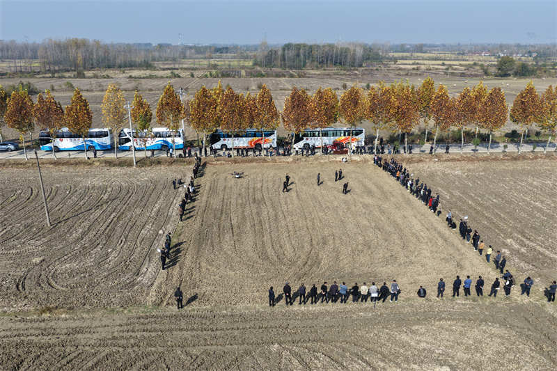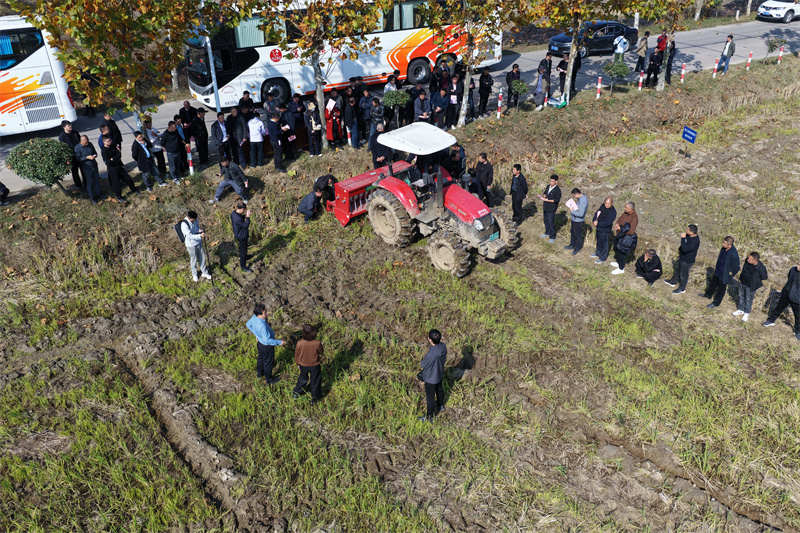 11月5日,信阳市农业农村局联合市农科院在光山县举办全市小麦和油菜抗湿晚播技术现场观摩培训会。来自各县区的种粮大户、农机合作社代表及农技人员百余人参加活动。