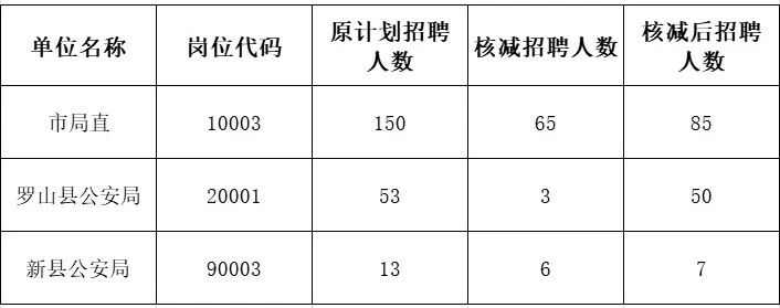 信阳市公安机关2025年公开招聘警务辅助人员核减岗位表
