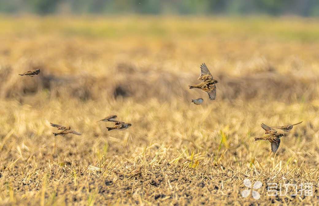 邓郁用镜头记录到成群铁爪鹀的身影。受访者邓郁供图
