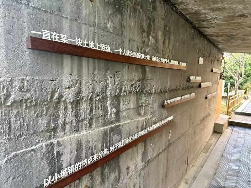 江村桥下,涵洞墙上贴着费孝通书摘句子。苏报融媒记者 周悦磊/摄