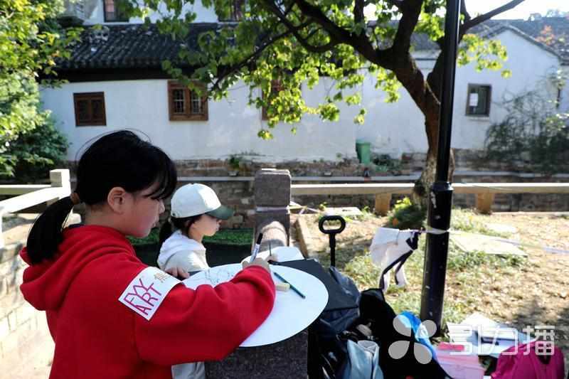 11月16日,一些小学生在姑苏区道前街写生作画。苏报融媒记者 濮建明/摄