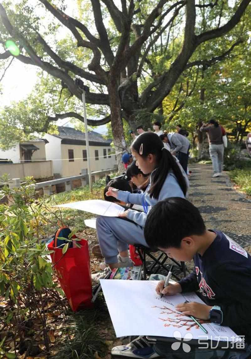 今天(11月16日),在姑苏区道前街网红柿子打卡点,美景如画,色彩斑斓,吸引了一些小学生前来写生作画。(苏报融媒记者 濮建明 文/摄/摄制)
