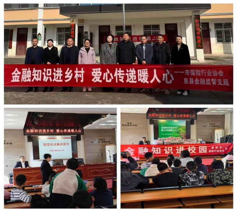 为切实筑牢“一老一小”重点群体金融防线,让普惠金融惠及特殊群体,推动金融安全理念向乡村校园延伸,近日,在信阳市保险行业协会、息县金融监管分局的统一组织下,中国人寿寿险息县支公司走进息县特殊教育学校,开展以“金融知识进乡村,爱心传递暖人心”为主题的公益宣传活动,为特殊教育儿童送上专属金融安全守护。