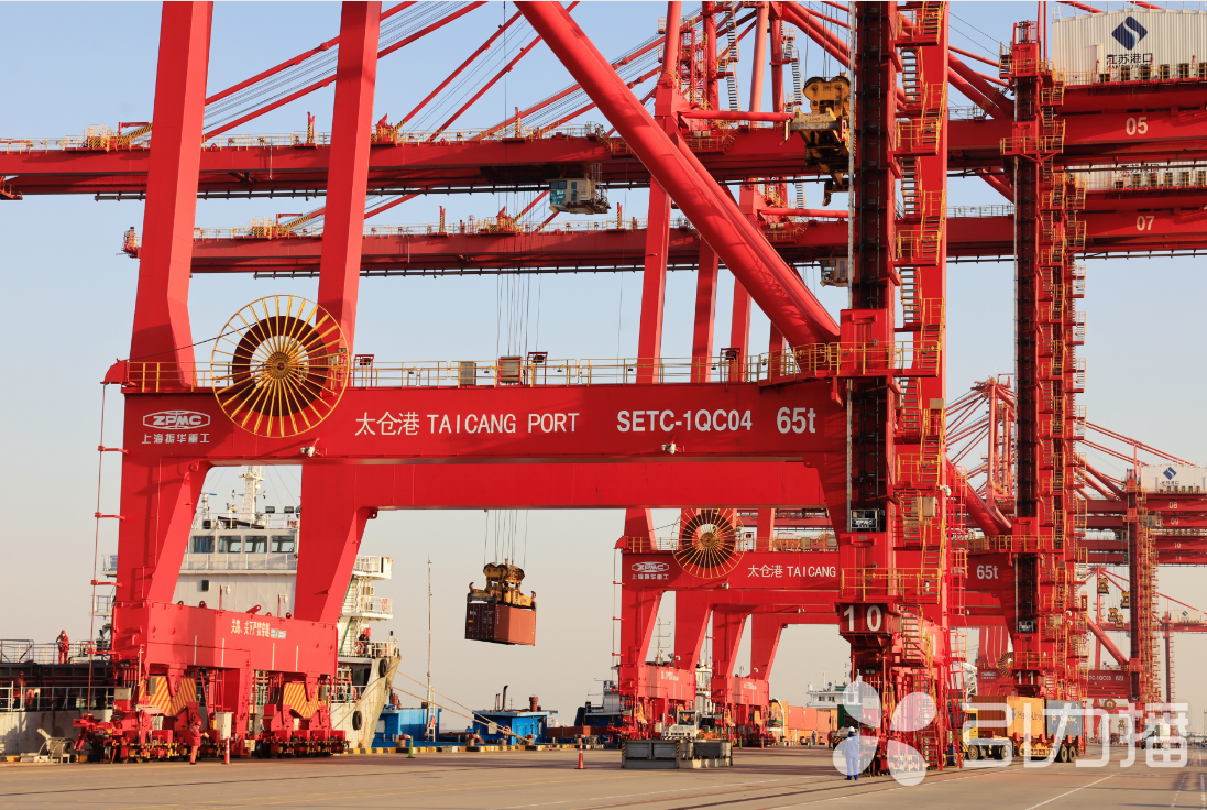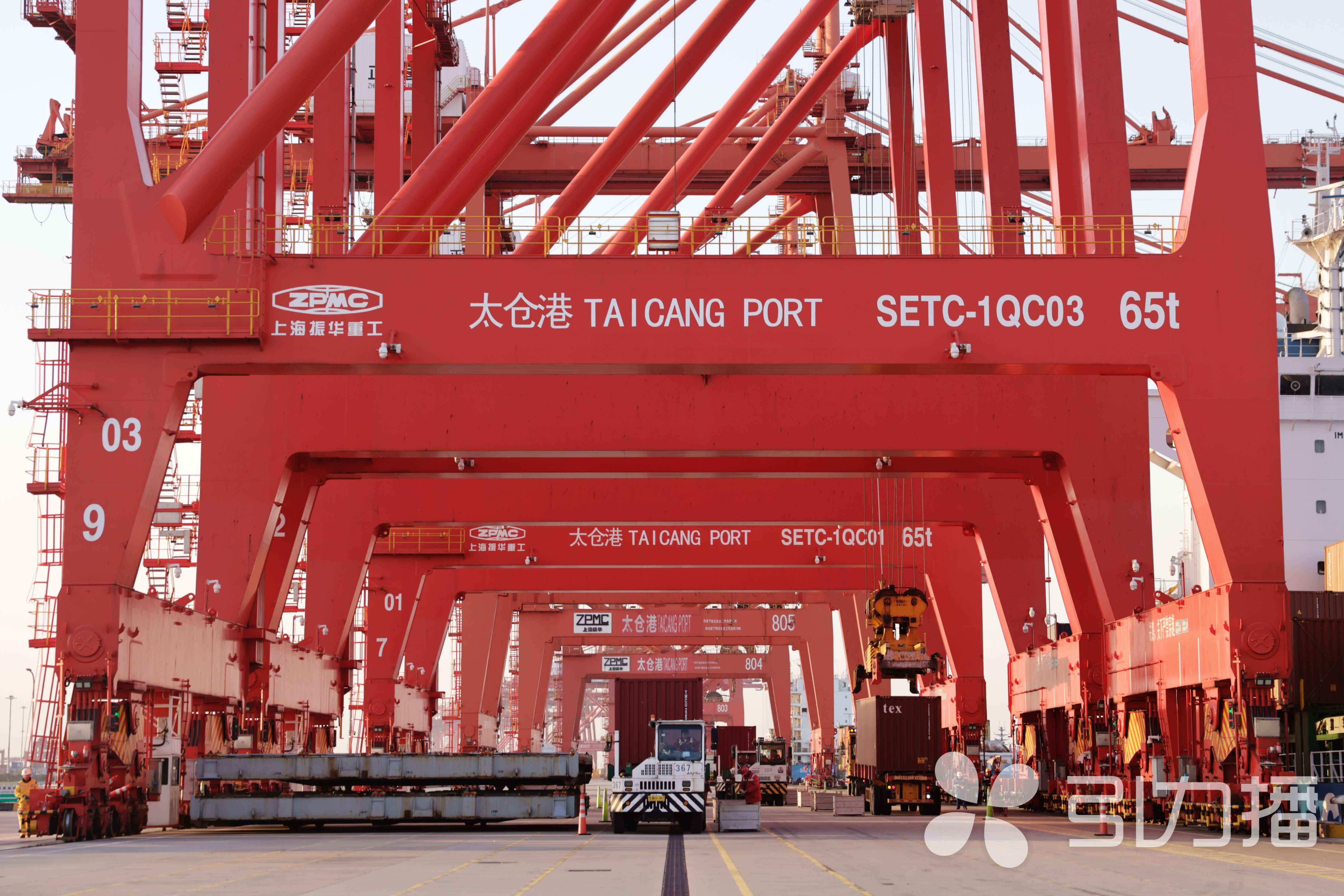 11月25日傍晚,位于长江入海口的苏州港太仓港区多船同泊、一片繁忙,港口内的船只和货车按部就班运输、装卸货物。(苏报融媒记者 倪黎祥 文/摄)