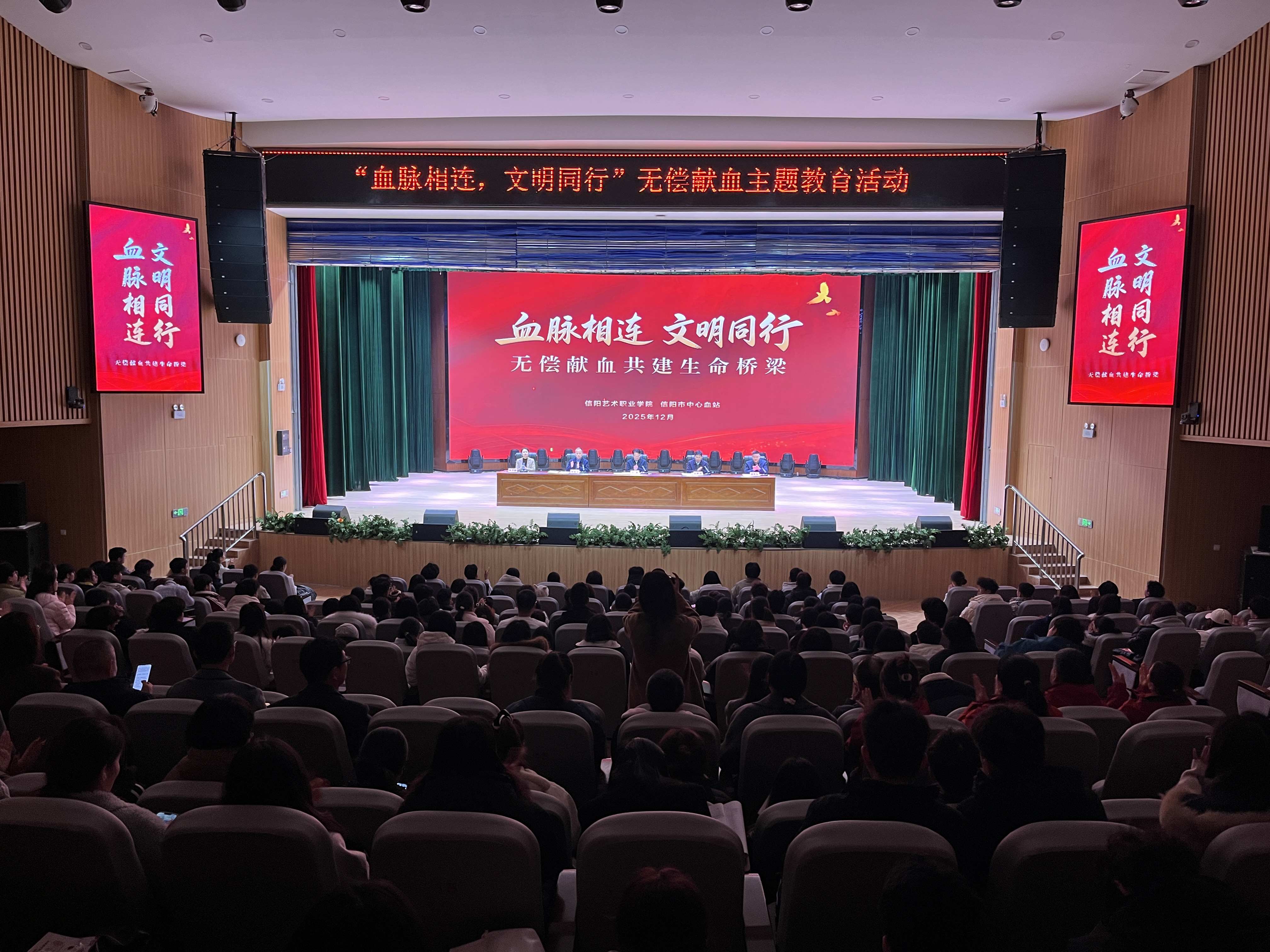 冬日的信阳艺术职业学院音乐厅暖意融融,12月2日,“血脉相连 文明同行”无偿献血主题教育活动在此上演了一堂生动的“行走思政课”。百余名师生齐聚一堂,用掌声致敬奉献,用热血诠释担当。