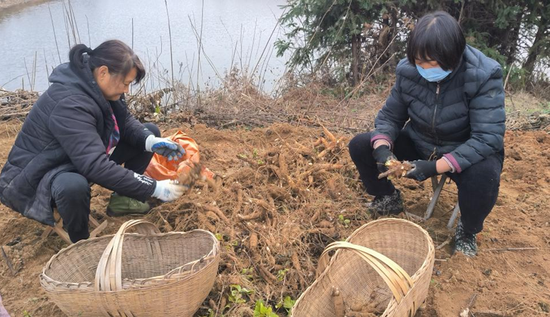 当下正值中药材玄参成熟季,新县吴陈河镇王洼村中药材种植基地一片繁忙景象。10余名村民分工协作,娴熟地完成捡拾、分拣、装袋、装车等流程。